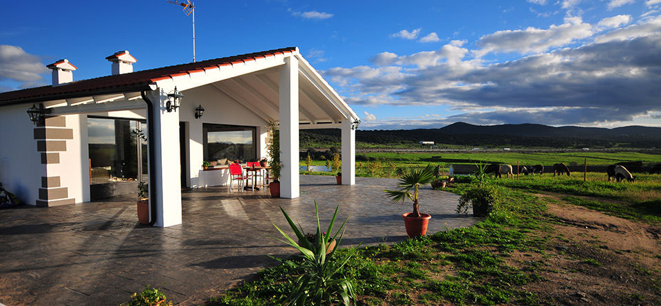La casa está ubicada en la dehesa extremeña, en una explotación de ganadería extensiva haciéndola presente al visitante y próxima a un embalse, pudiéndose observar desde el salón las diferentes especies de aves acuáticas según la época del año.